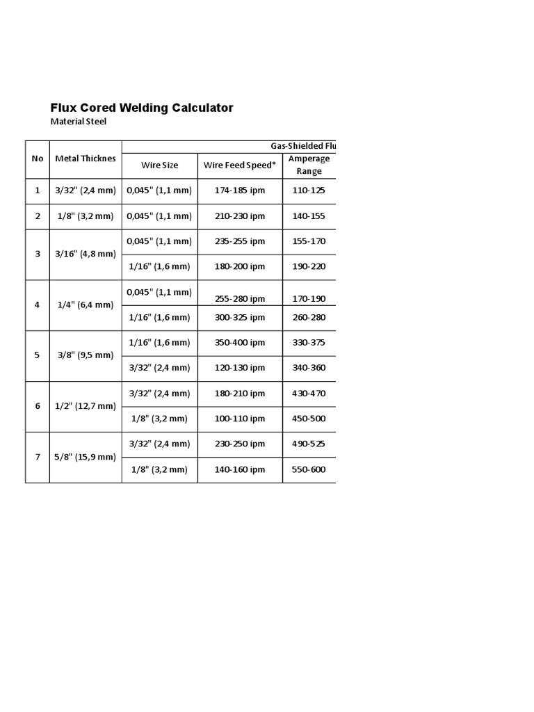 It provides welders with a tested range of amperage settings linked to the wire size used and the material’s thickness. Web our 7 tips & tricks for beginner flux core welding 1. Make sure your polarity is correct. Web here goes a chart for 0.045 flux core vertical settings depending on several welding positions. Refer to the flux core mig welding wire speed and voltage chart to verify your accurate settings to attain the desired weld bead width, penetration, and overall quality.
