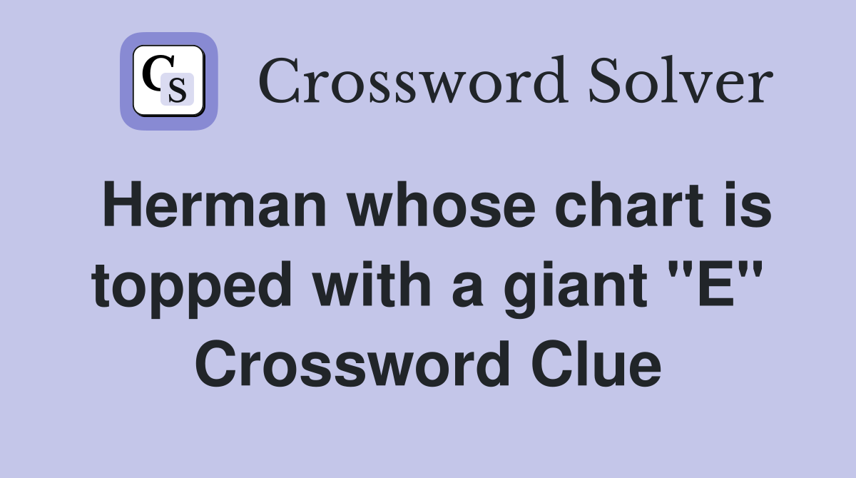 The top solutions are determined by popularity, ratings and frequency of searches. This crossword clue was last seen on april 9 2024 la times. The crossword solver finds answers to classic. Web the crossword solver found 30 answers to herman whose chart is topped by a giant e, 7 letters crossword clue.