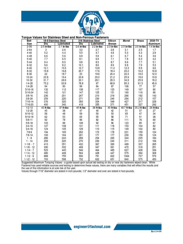 Web 5)stainless steel fasteners tend to gall while being tightened. Web maximum tightening torques for us bolts. Web torque values stainless steel bolt table chart. Web values given represent the torque required to induce a tension in the bolt corresponding to approximately 65% of its proof load.